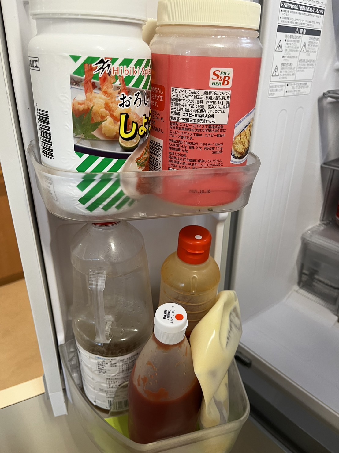 ①シール貼りまくり~とお客様から遅られてきた冷蔵庫の写真