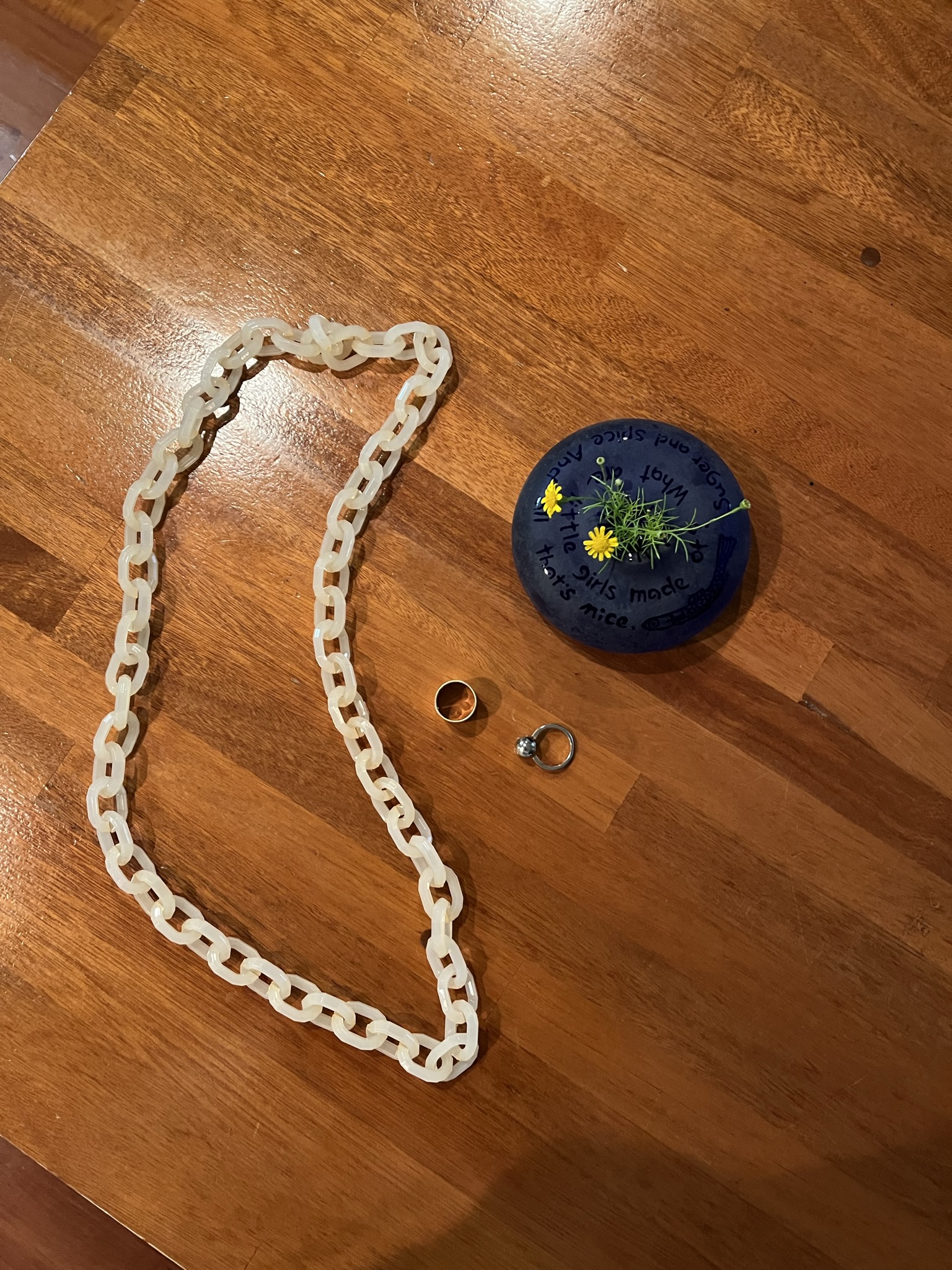 シンプルなデザインの服が多いので、大ぶりのアクセサリーを
