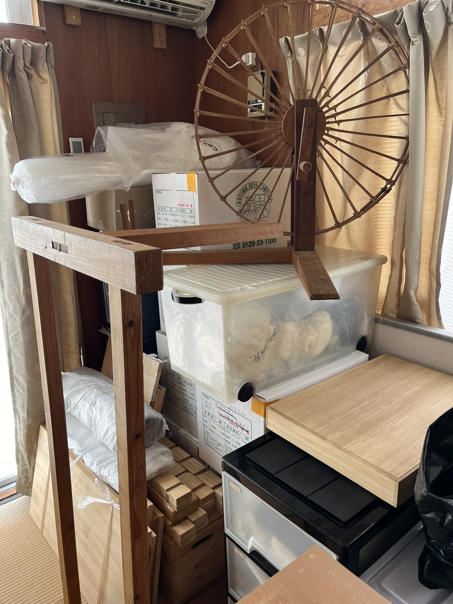 Aさんに比べると、道具が少し多めのYさんには、引っ越す前に、「こんな感じで、道具や機織りの配置を考えている」とイメージを聞いていたので、そのアイディアが最適か確認しながら、実際に作業がしやすい配置を決めていきました。