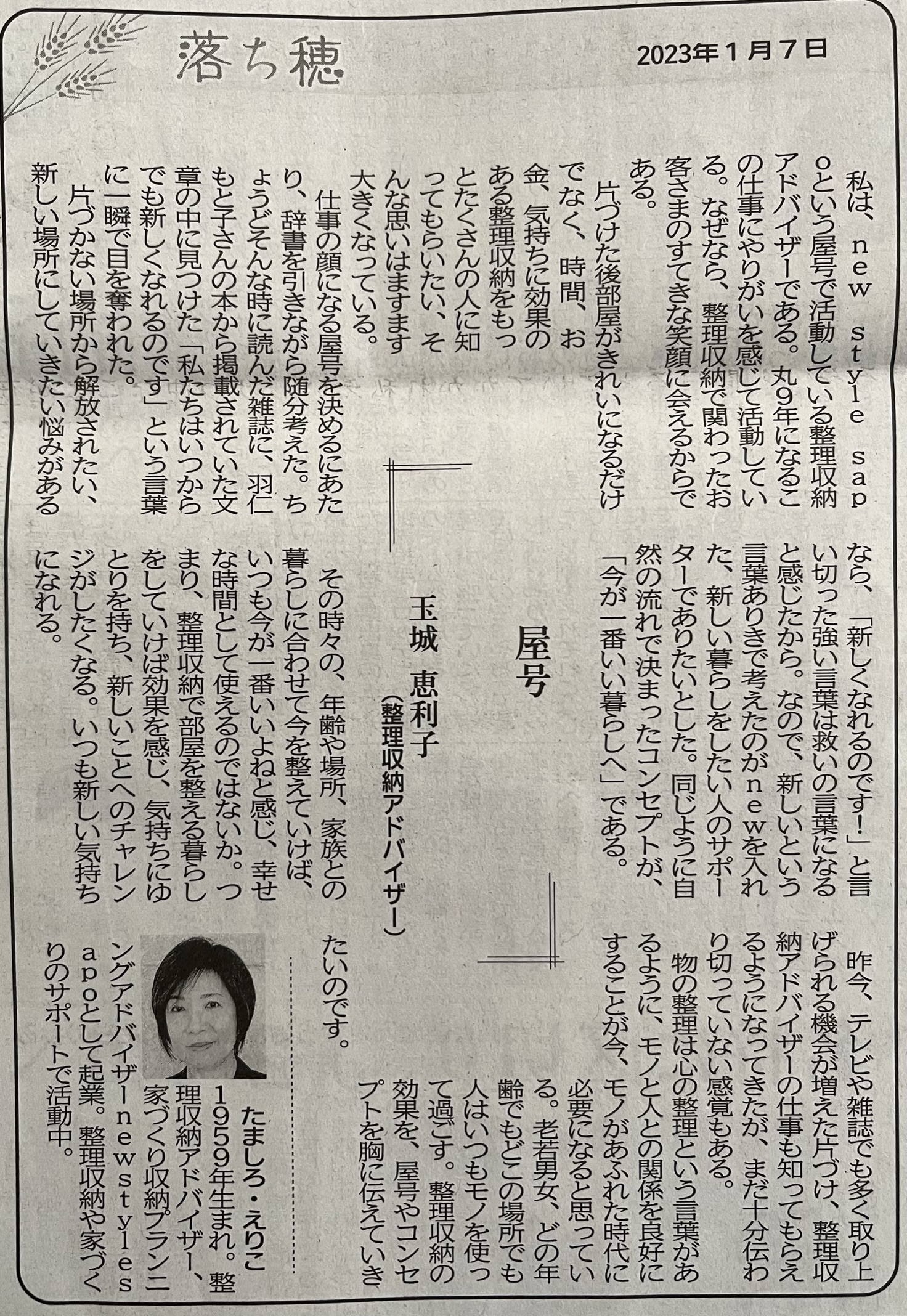 去年1月から6月までの半年間、沖縄の新聞、琉球新報の「落ち穂」というコーナーでコラムを書かせていただいていました。