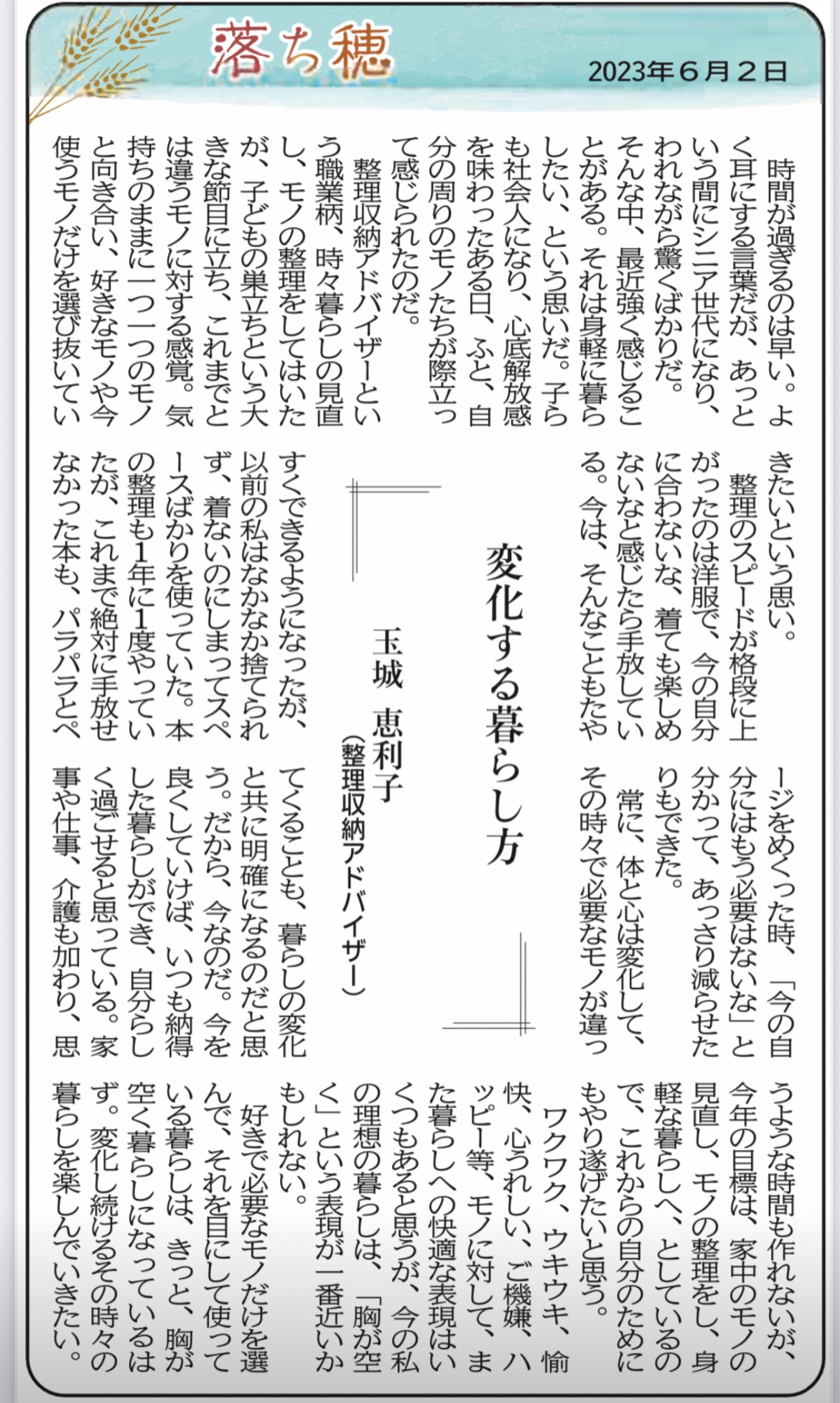 『変化する暮らし方』というタイトルの内容は、長女が社会人になり、これまでの学生の親としての立場ではなくなった気持ちの大きな変化について書いたものです。