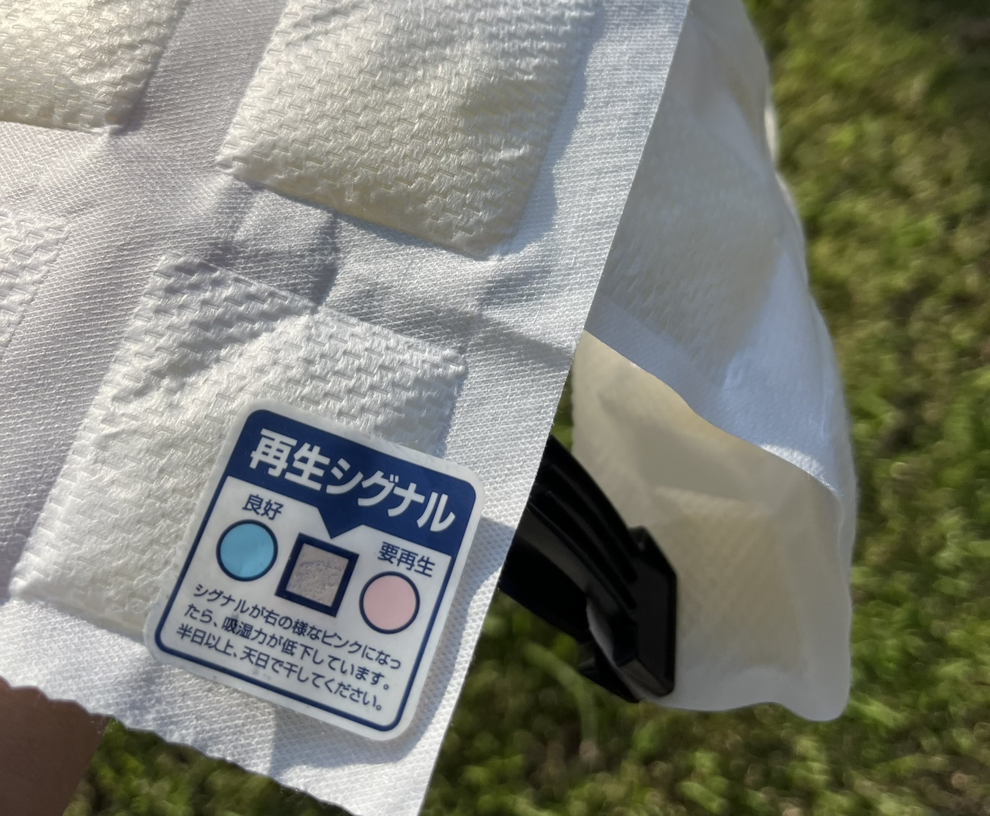 シリカゲルが湿気を含むと、シグナルとして、良好を示す青からピンク色へと変化してくるので、それが天日干しをする目安。