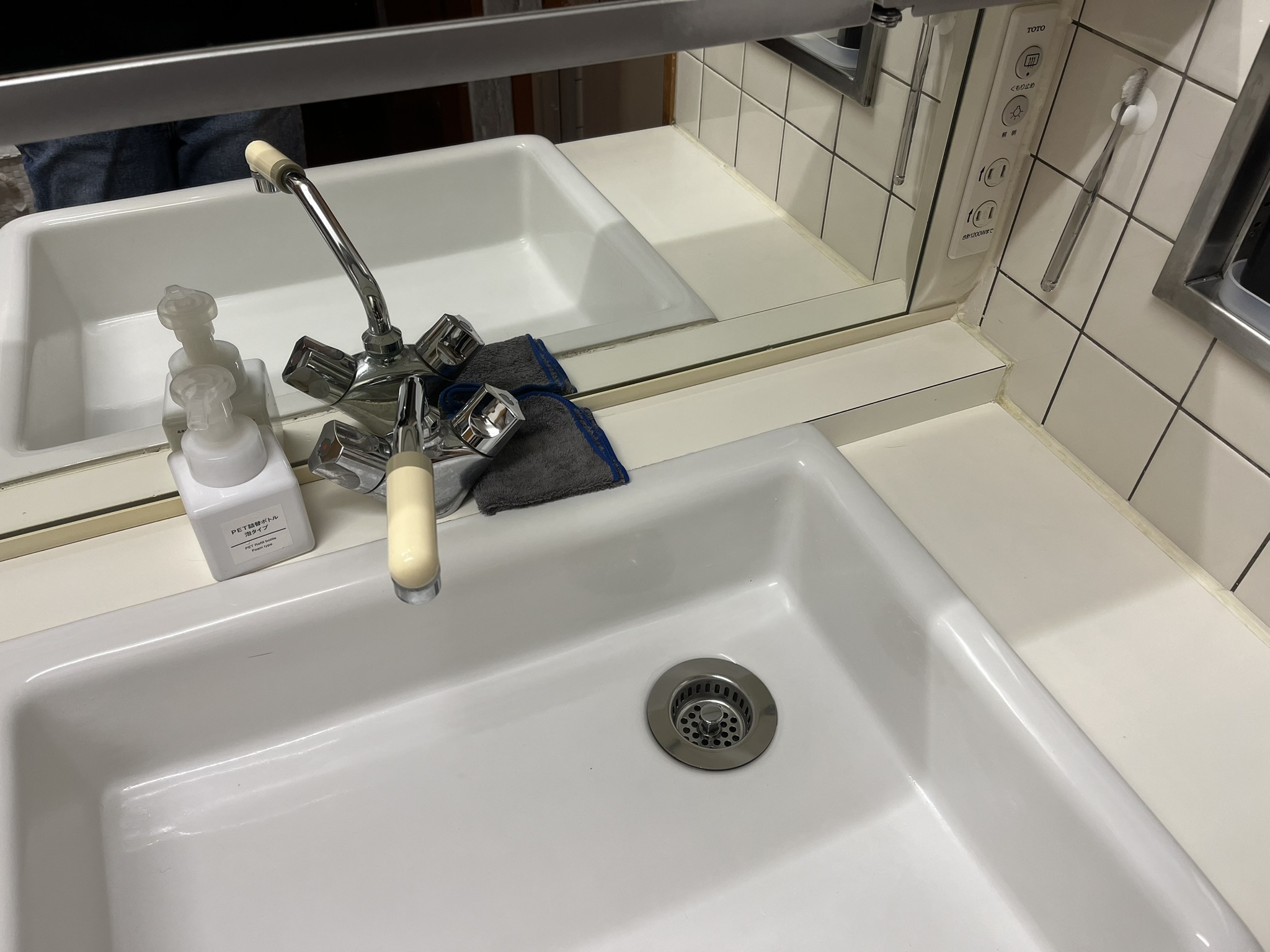 そう思って考えた仕組みは、水栓の根元にミニタオルを置くこと、古い歯ブラシをすぐに取れるように見えるように近くにセットすることでした。