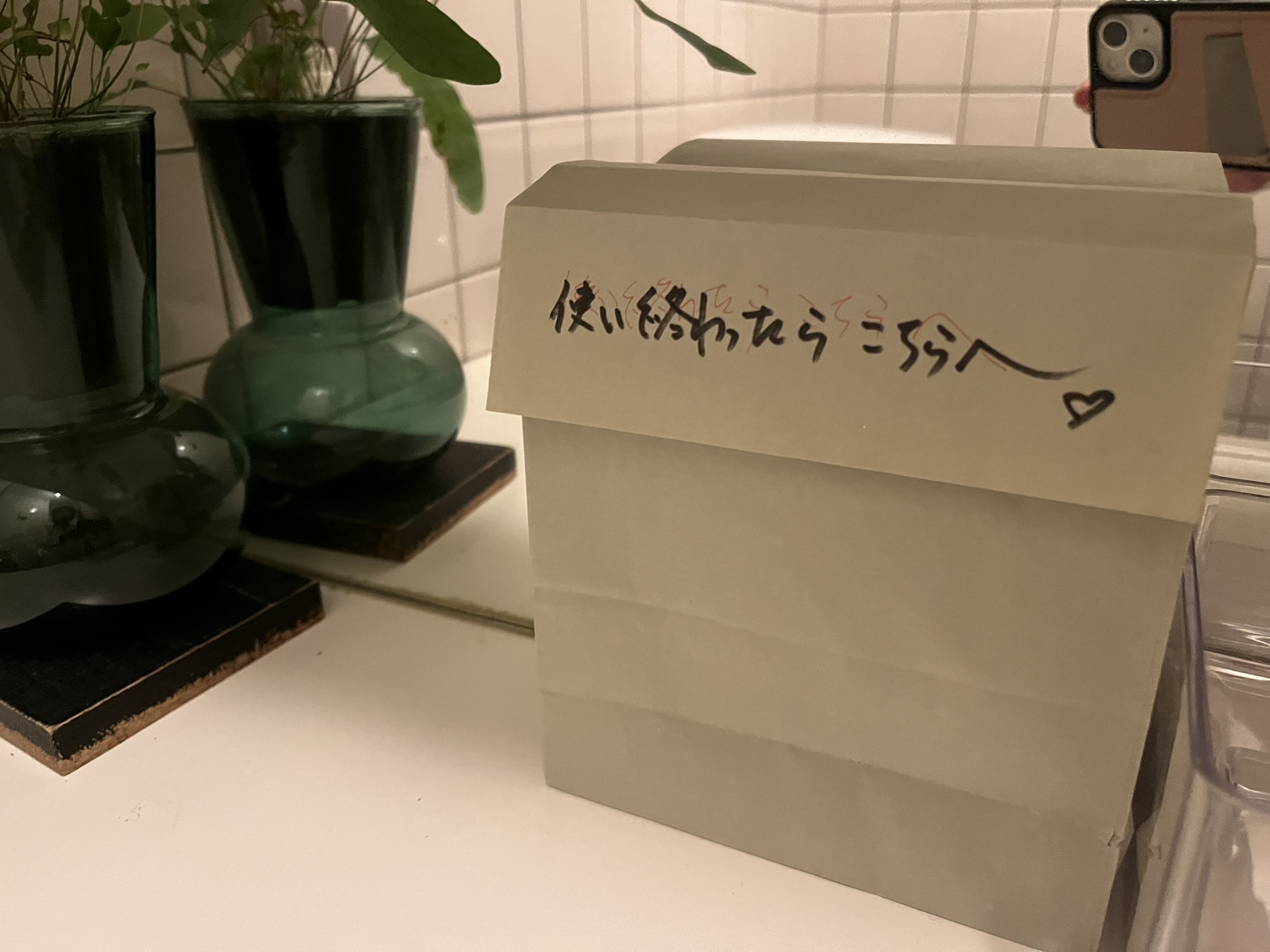 工夫したことは蓋を作ること、そうすれば来客も気にせずに捨てることが出来ます。