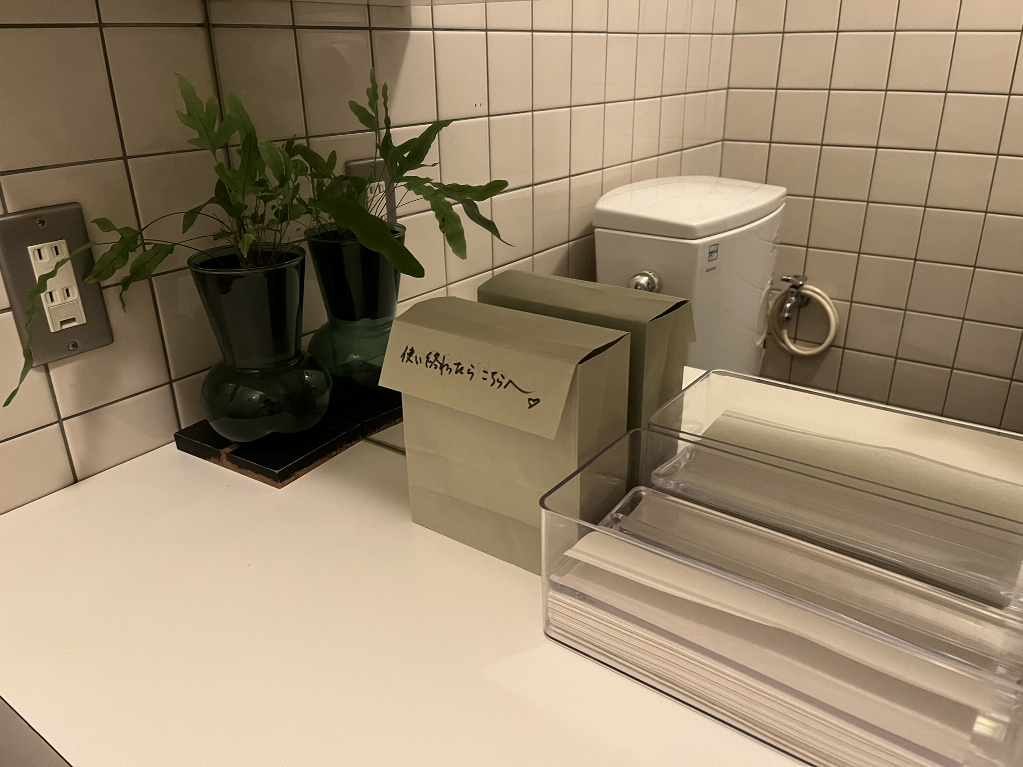 コロナ前とその後、変化が必要だったのが、タオルからペーパータオルへと置くモノが変わったということです。