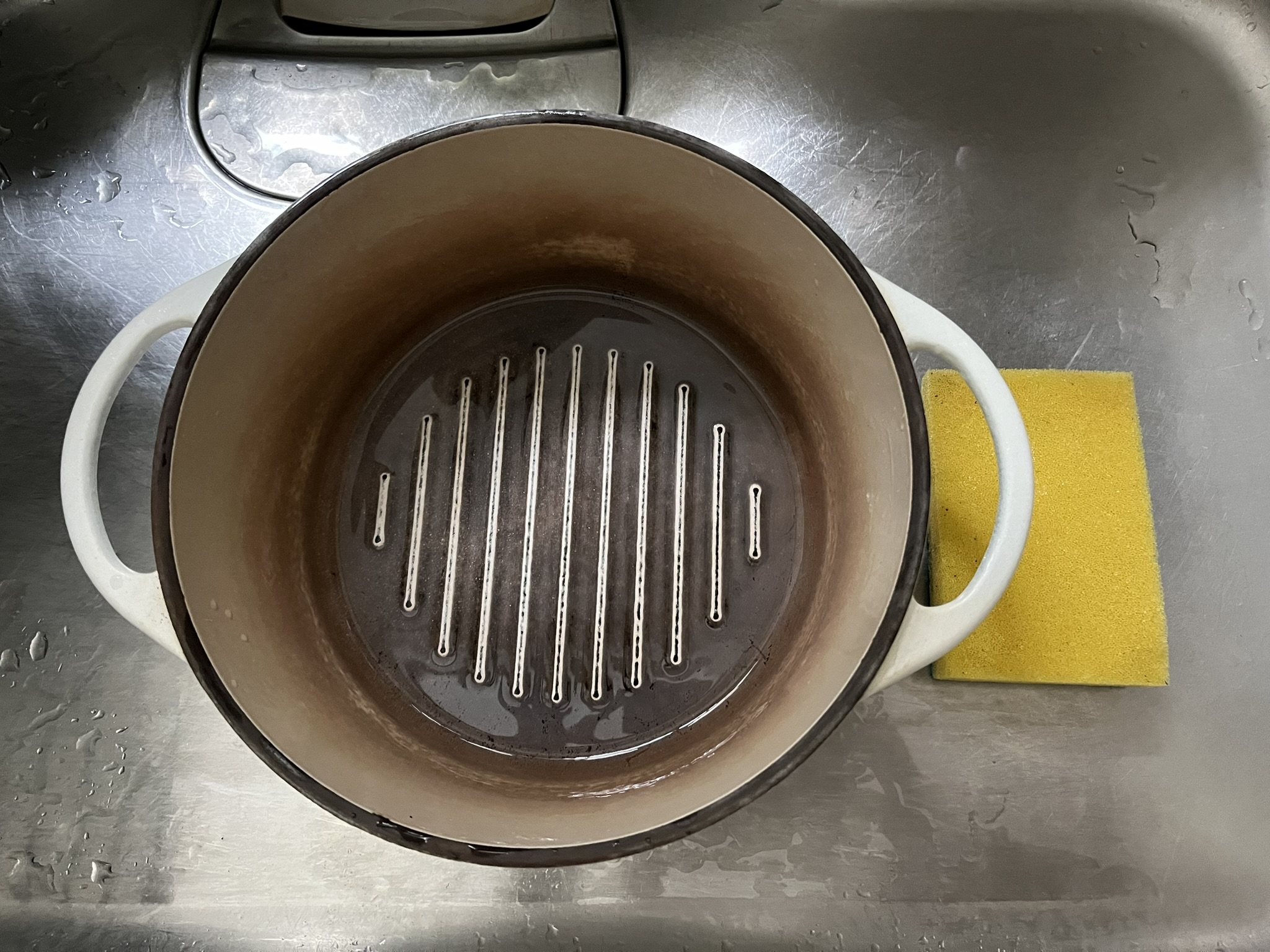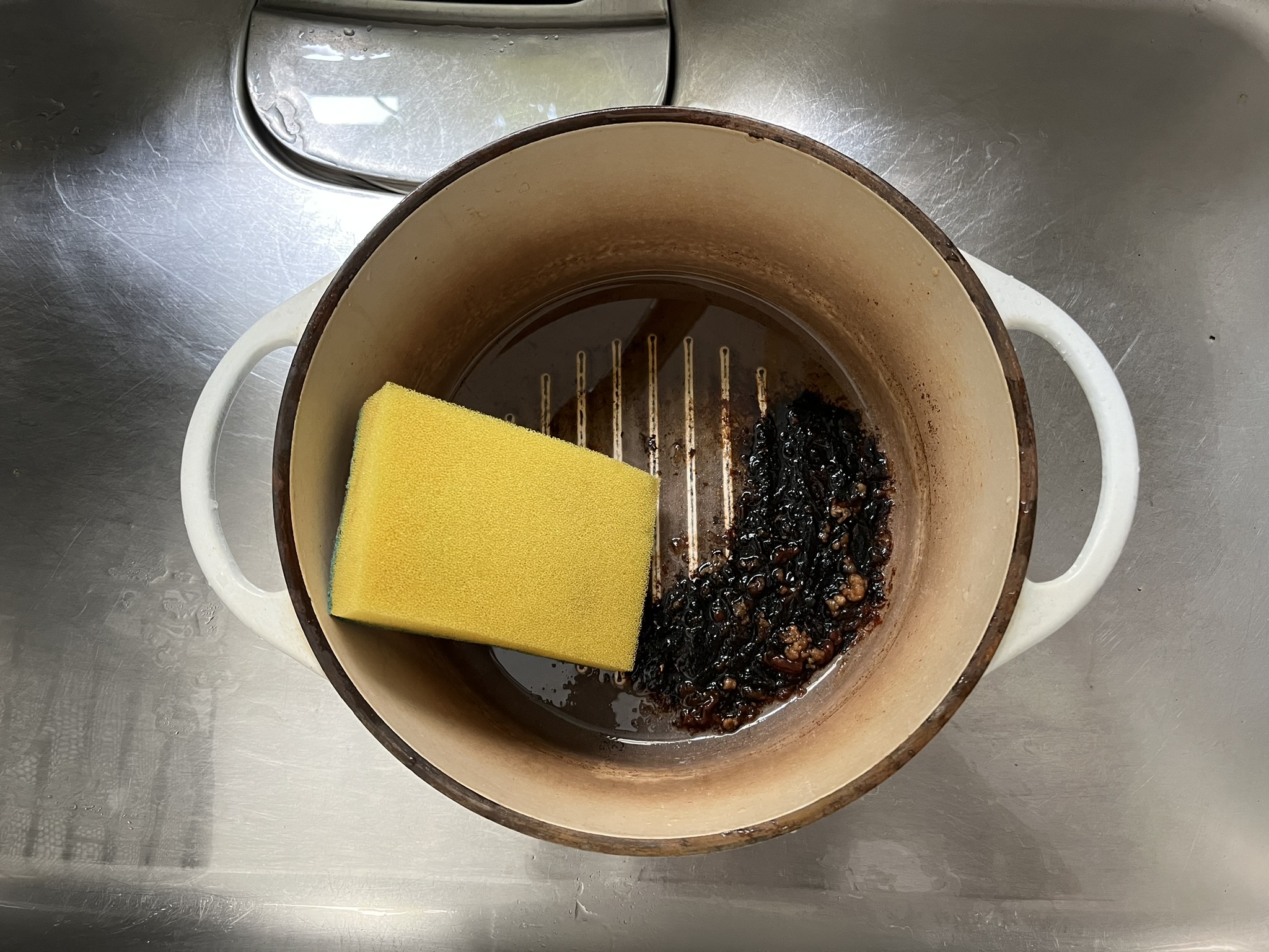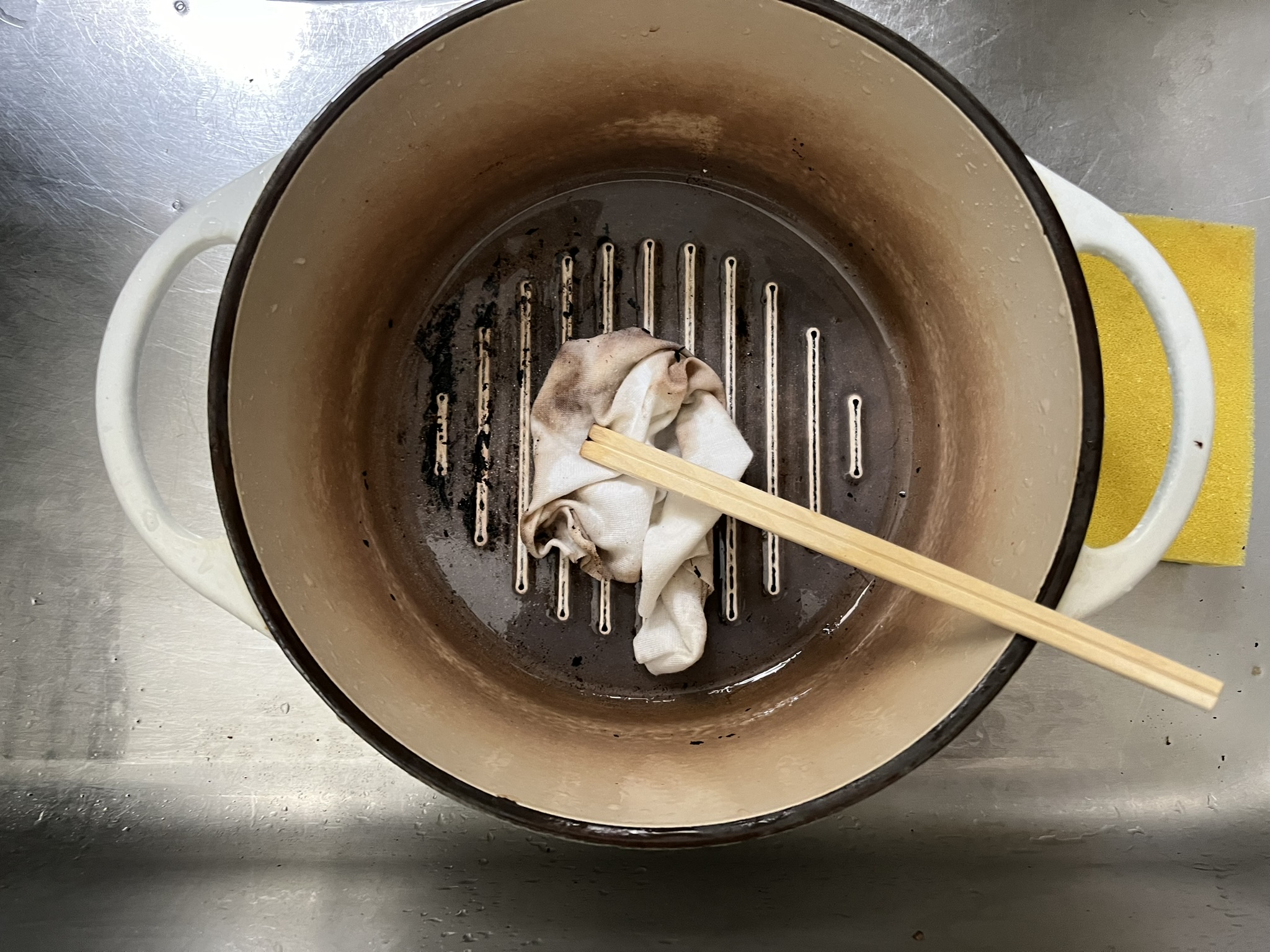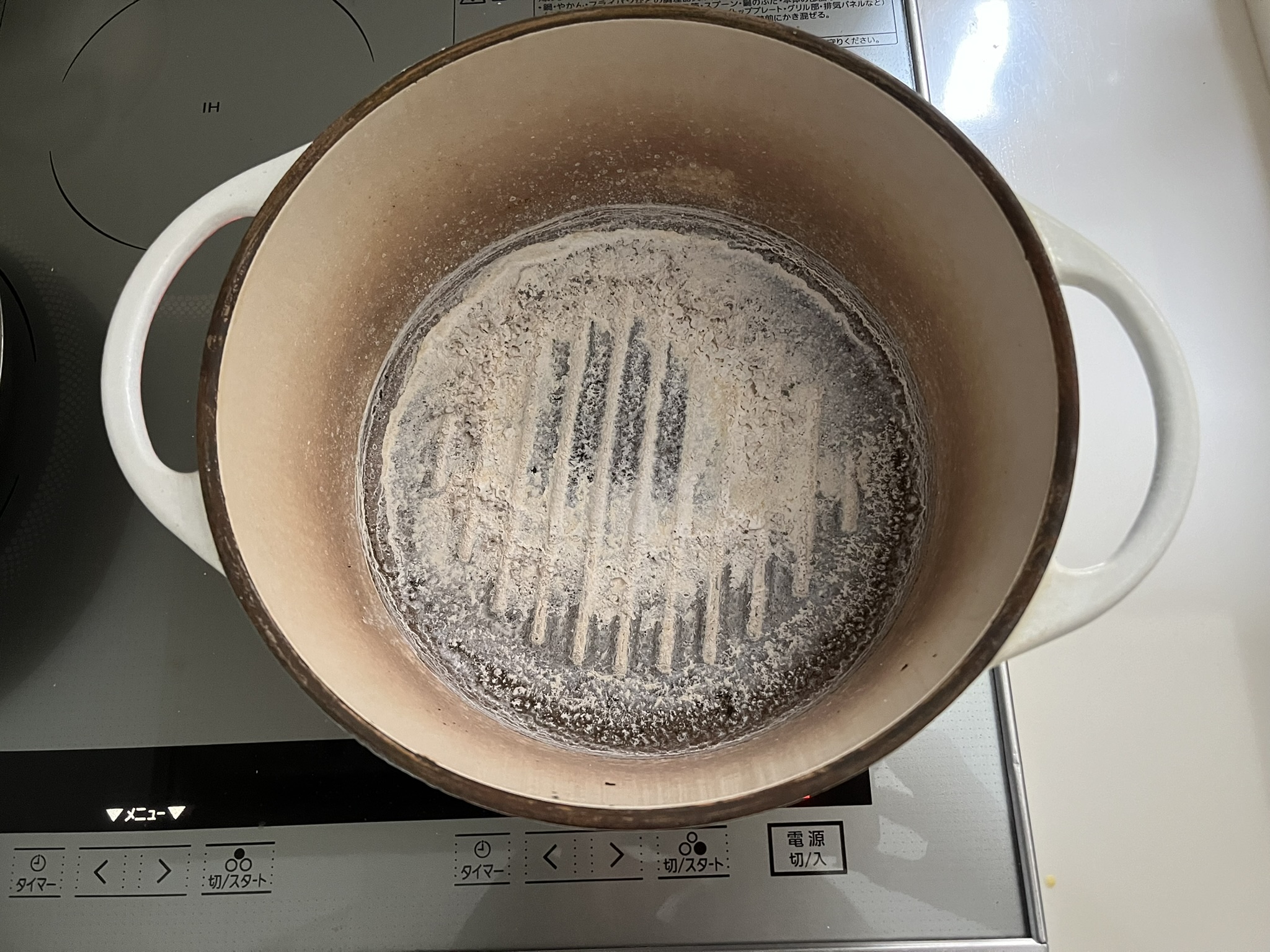 水をこぼしてみたら頑固な焦げが残ったまま。