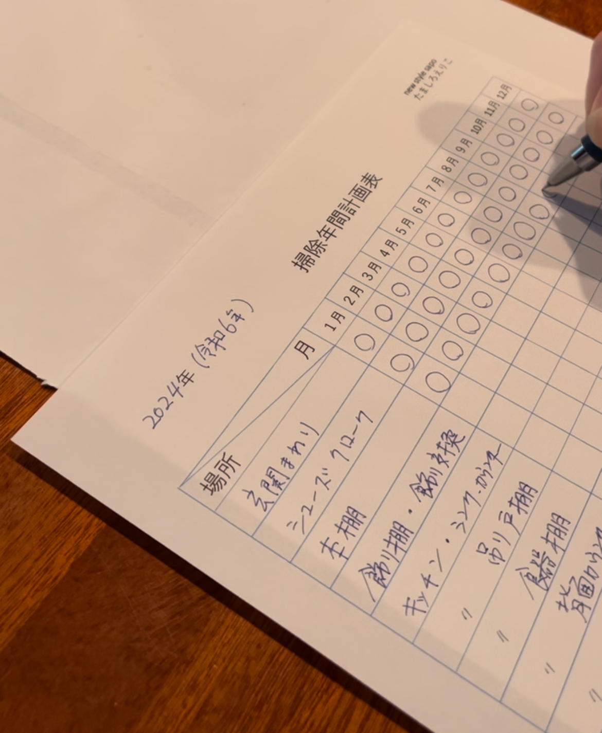 今年は中途半端になり、年間掃除表を十分活用できずでしたが、場所を変えると活用しやすいのか、この方法は自分に合っているのか、他に良い方法があるのか、試してみたいと考えています。