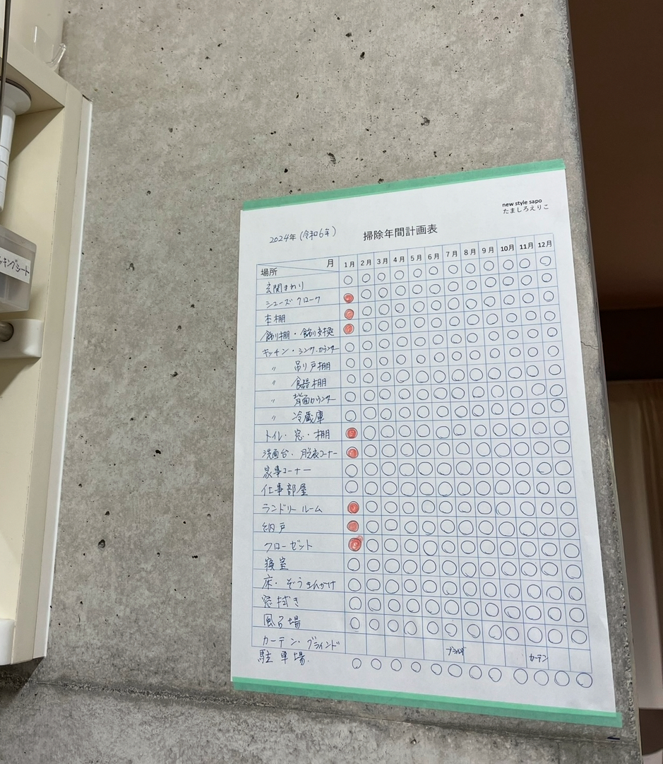 たまたまテレビを見ていた2013年のこと、年間計画を立てて掃除ををすると大掃除に時間をかけなくて済むことを知り、この方法を取り入れてやり始めたのです。