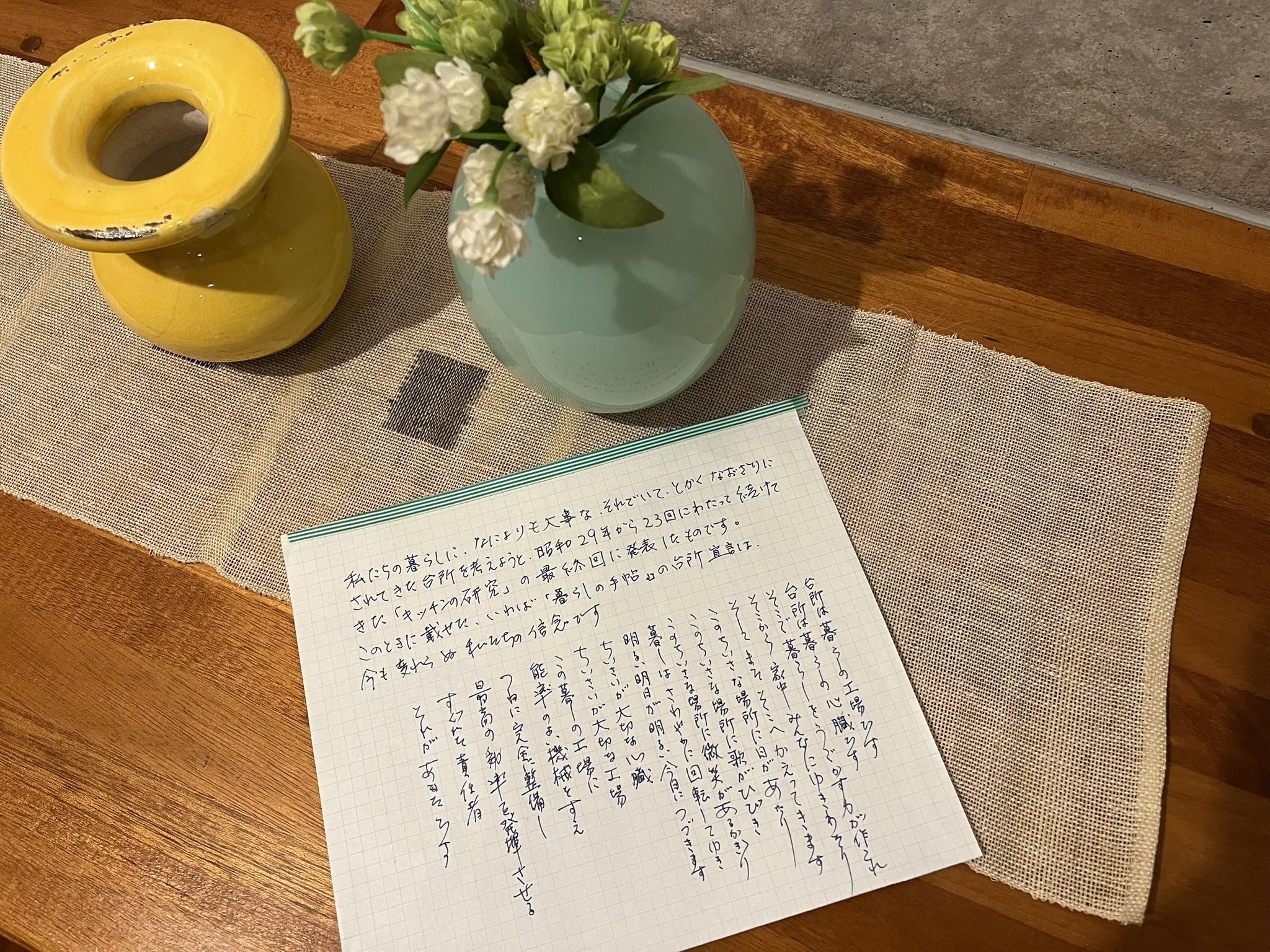 昨日、書類の整理をした時、外部でのキッチンセミナーをした際のファイルの裏に、その書き取りをした文章が貼ってありました。