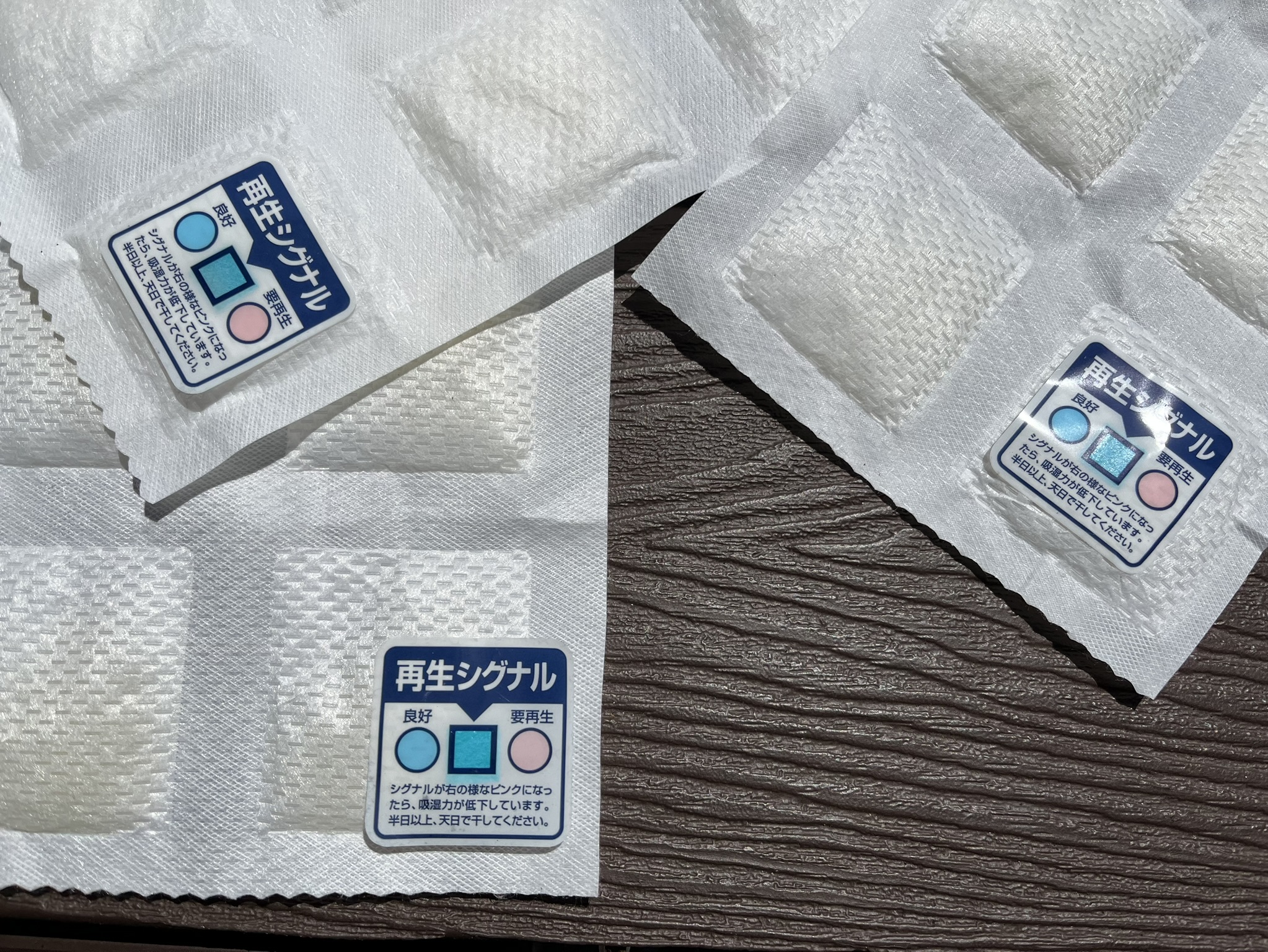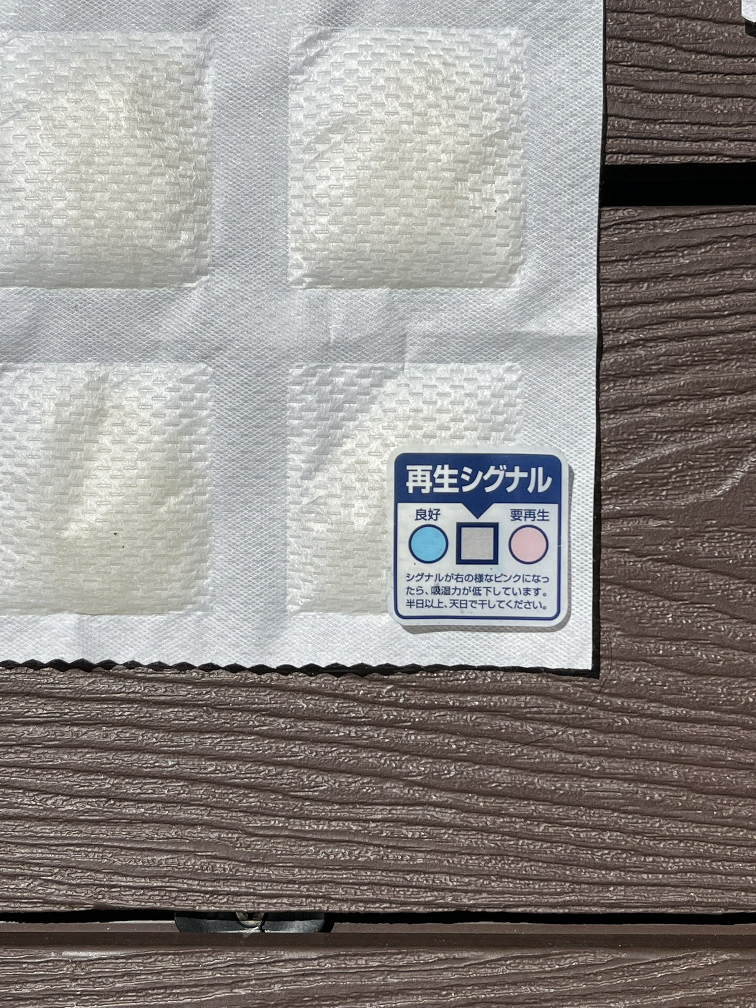 乾燥を促す再生シグナルの色はピンク色なので、青色に変化させるまで天日に干します
