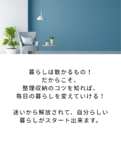 片づけの基本を学び、自分らしい暮らしをスタートできます。