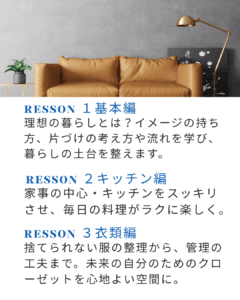 「整理収納ってどんなこと?」が分かり、暮らしのイメージが具体的に持てな方のための講座です。