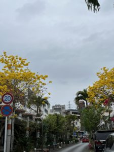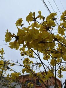 資料館に向かう道道には、季節真っ盛りのイペーの花が鮮やかに咲いていて、黄色を愛でつつ。
